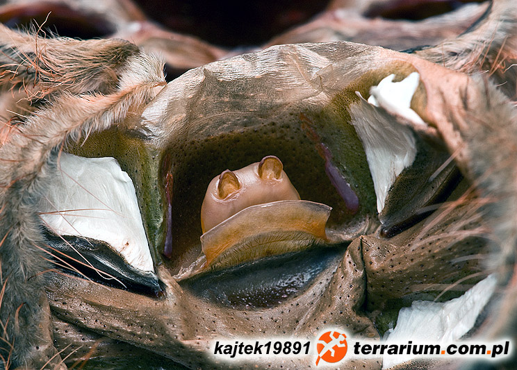Jad tego gatunku ptasznika nie został jeszcze dokładnie przebadany. Co do jego działania słyszałam sprzeczne wieści. Część osób twierdzi, że jest niebezpieczny dla człowieka, część ma przeciwne zdanie. Ja przychylam się do tej drugiej opinii – owszem, jad jest groźny, ale innego gatunku, Acanthoscurria juruenicola.