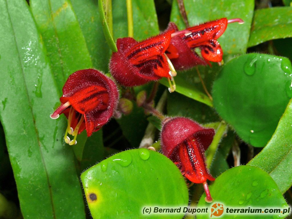 - Aeschynanthus 'Mona’ – liście jednolicie zielone, łatwo kwitnie.