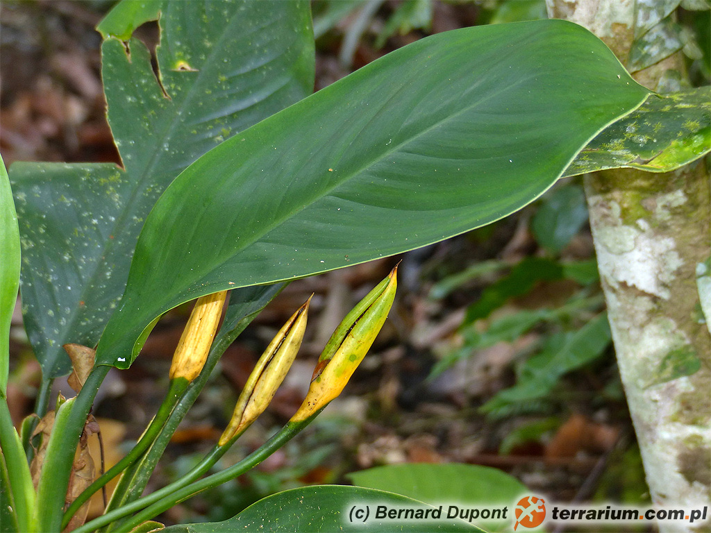 - Aglaonema pseudobracteatum – liście zielone w żółte plamy