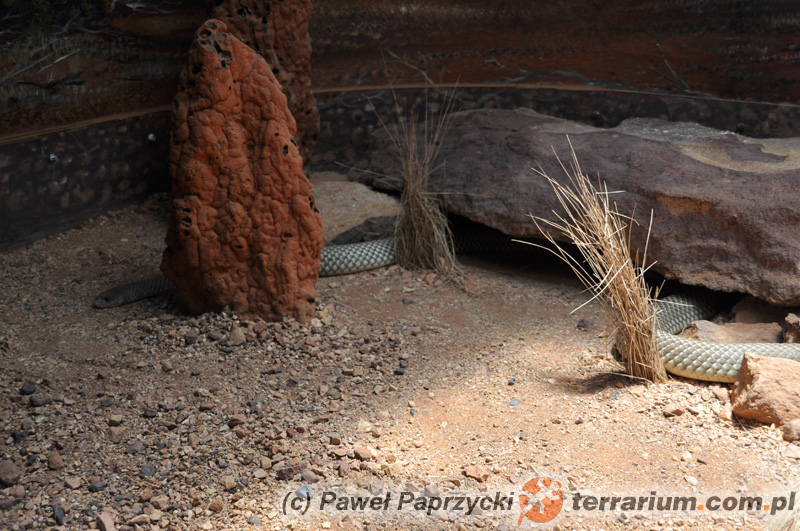 W pawilonie z wężami Australli (Mapa punkt 45) znajdziemy najbardziej jadowitego na świecie tajpana pustynnego (Oxyuranus microlepidotus), a także Pseudonaja textilis, Pseudechis porphyriacus. Możemy również obserwować dusiciele m.in. Morelia viridis (pyton zielony), Liasis fuscus, Morelia spilota, Aspidites ramsayi (Woma), Antaresia maculosa (pyton plamisty).