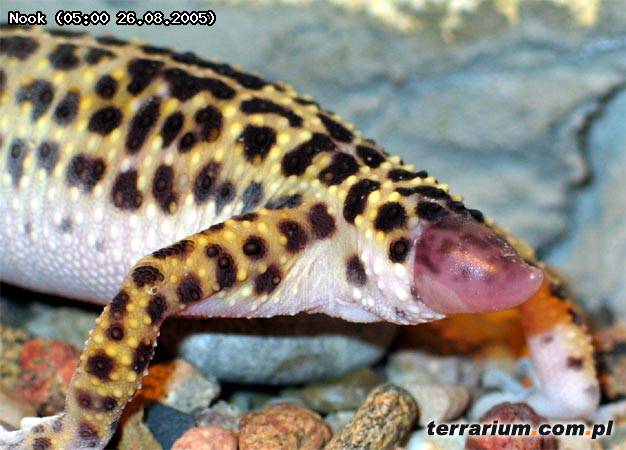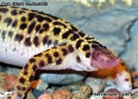 Gekon lamparci (Eublepharis macularius) Częściowo zregenerowany ogon po autotomii