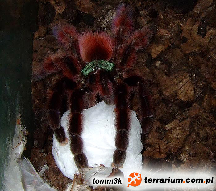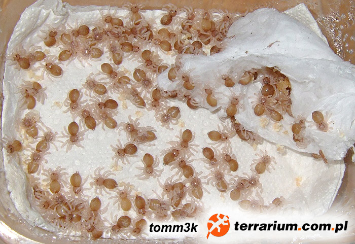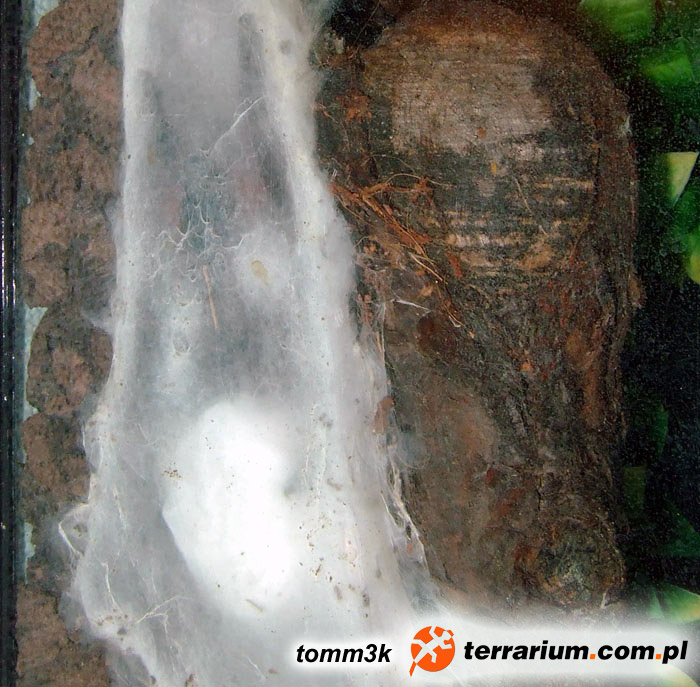 | Opis kopulacji: | 2009-08-12 – pierwsza kopulacja, zakończona powodzeniem. Po tygodniu znów wpuściłem samca do samicy na noc, lecz nie mam pewności, czy pająki kopulowały | |