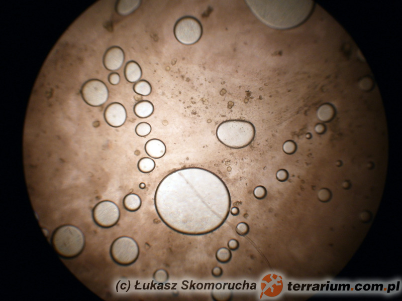 Pęcherzyki powietrza to częste artefakty w preparatach wykonywanych metodą flotacji – Badanie parazytologiczne gadów