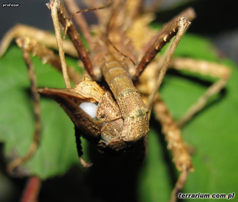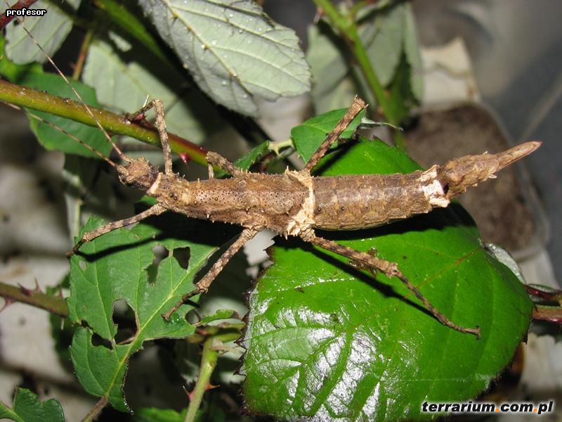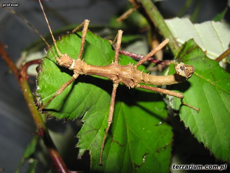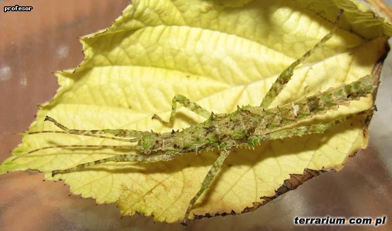 Terrarium o wymiarach 30x30x30 cm [dł. x szer. x wys.] zapewni pełen komfort 4 parkom. Dno wysypujemy włókniną kokosową, torfem, mieszanką włókniny i piasku aby straszyki mogły bezpiecznie składać jaja. Jeżeli decydujemy się natomiast na wyłożenie dna terrarium ręcznikami papierowymi pamiętamy o pojemniczku z torfem do którego samice będą składać jaja – brak podłoża odpowiedniego do składania jaj grozi uszkodzeniem pokładełka samicy. W terrarium możemy umieścić konary lub korzenie, które stworzą atrakcyjne kryjówki dla owadów. Gatunek ten lubi nieco wyższą wilgotność, należy zatem zraszać terra regularnie 1-2 razy dziennie.