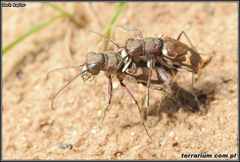 Biegaczowate (Carabidae, Latreille, 1802) Jedna z liczniejszych rodzin owadów (Insecta) z rzędu chrząszczy (Coleoptera). Obecnie sklasyfikowano ok. 40.000 gatunków (w Polsce ok. 600). Owady o dużej rozpiętości rozmiarów (3 – 80 mm). Posiadają długie lub średniej długości, nitkowate czułki, składające się przeważnie z 11 członów. Czasem na członach występują wyraźne, długie włoski. Głowa mała, prognatyczna, przeważnie lekko wydłużona i przypłaszczona. Najczęściej nie mają wykształconej szyi. Występuje jedna para dużych oczu złożonych, przyoczek brak. Aparat gębowy z silnie rozrośniętymi żuwaczkami (zwłaszcza u trzyszczy Cincinnelinae). Przedplecze szerokie i dość płaskie, przykrywa cały tułów, rzadko jest wąskie i cylindryczne. Najczęściej kwadratowe w zarysie lub rozszerzające się ku któremuś ze swoich końców. Pokrywy, silnie stwardniałe, zakrywają przeważnie cały odwłok. U niektórych gatunków widoczny jest jego koniec. Na pokrywach może znajdować się bogata rzeźba w postaci rowków, guzków i dołków. Większość biegaczy ma wykształcone obie pary skrzydeł, jednak u wielu druga, błoniasta para zanika częściowo lub całkowicie. W ostatnim przypadku pokrywy są ze sobą zrośnięte (jak u wielu przedstawicieli rodzaju Carabus). Na odwłoku 6 – 8 widocznych sternitów, tylne biodra przykrywają pierwszy i częściowo drugi sternit. Nogi bieżne, długie i smukłe (czasem pierwsza para grzebna). Stopy pięcioczłonowe, u samców na pierwszej parze człony rozszerzone. Carabidae charakteryzują się dużym bogactwem kolorów, jednak większość gatunków nie rzuca się w oczy (są czarne, brunatne, brązowe). Niektóre posiadają błyszczące metaliczne ubarwienie: zielone, czerwone, niebieskie, złote. Biegacze są w przeważającej większości drapieżnikami o ogromnej roli ekologicznej. Polują najczęściej aktywnie, goniąc swoje ofiary. Specyficzne dla wielu Carabidae jest trawienie pokarmu pozajelitowo. Zamieszkują praktycznie wszystkie środowiska, są aktywne głównie w nocy, dzień spędzają pod kamieniami i w innych kryjówkach. Przedstawiciele rodzaju strzel (Brachinus), wytwarzają obronną substancję o charakterze wybuchowym. Większość biegaczy, broniąc się, wydziela szereg cuchnących substancji (np. kwas masłowy). W naszym klimacie ich cykl życiowy trwa najczęściej rok. Zimują postacie dorosłe, przepoczwarzone na jesieni. Larwy biegaczy, podłużnego kształtu, również prowadzą drapieżny tryb życia i zamieszkują podobne biotopy jak imagines. Niektóre, jak trzyszczowate, kopią nory w ziemi i polują z zasadzki. Przepoczwarzają się najczęściej w ziemi. Znane gatunki: biegacz skórzasty (Carabus coriaceus), biegacz ogrodowy (Carabus hortensis), biegacz zielonozłoty (Carabus auronitens), liszkarz tęcznik (Calosoma sycophanta), trzyszcz piaskowy (Cicindela hybrida). Wszystkie biegacze z rodzaju Calosoma i Carabus objęte są ochroną.
