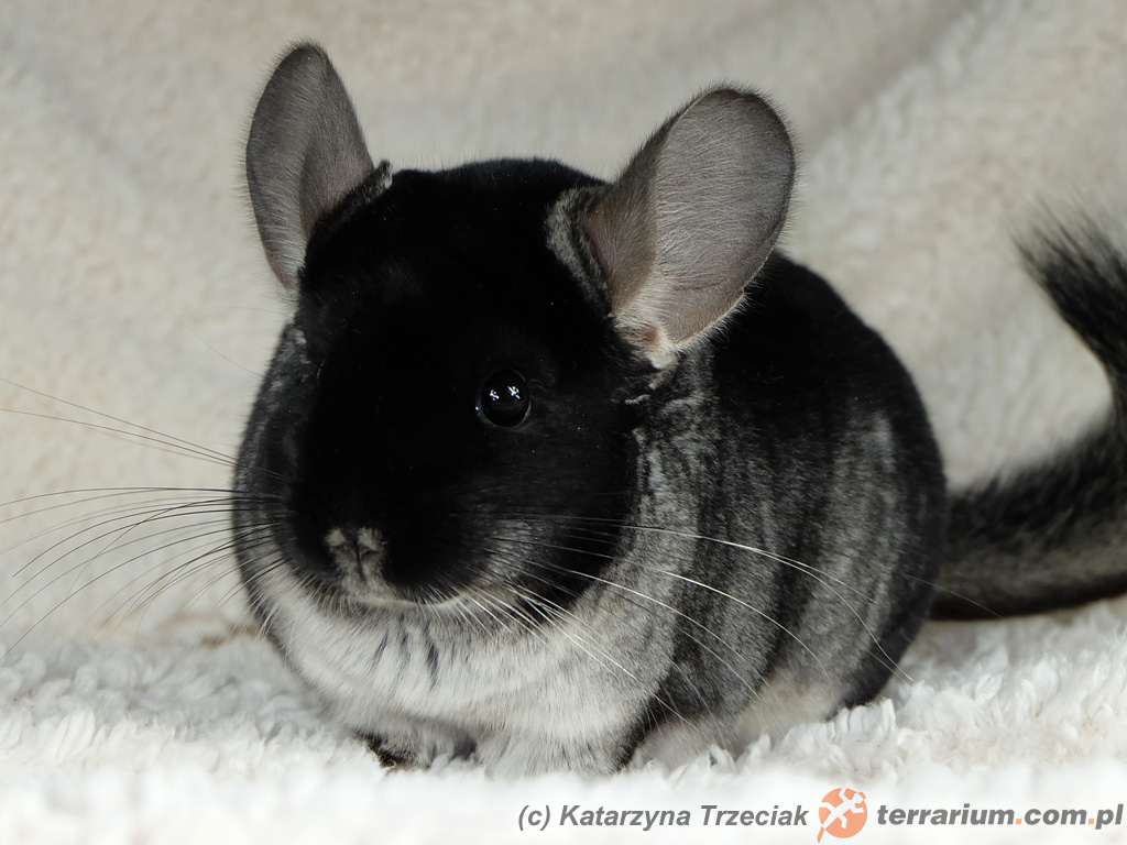 Odmiana czarna aksamitna, przykład odmiany dominujacej – Chinchilla lanigera – szynszyla mała