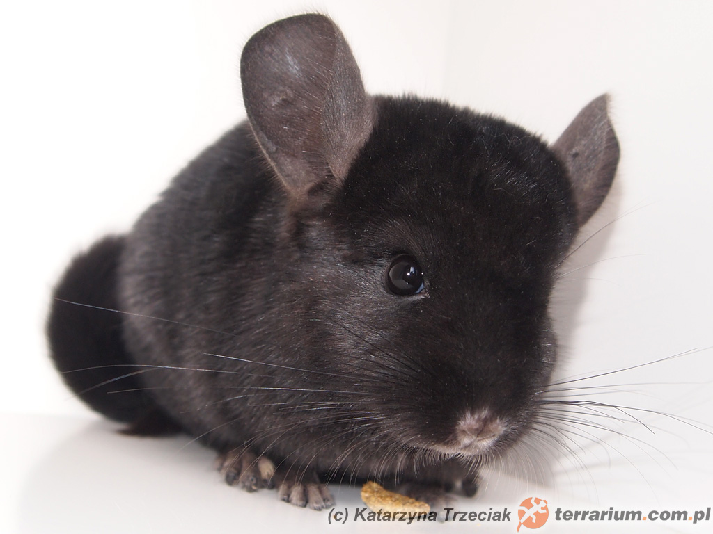 Extra dark ebony, przykład odmiany dominującej ebony –  Chinchilla lanigera – szynszyla mała