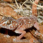 Ubarwienie grzbietu od jasnopomarańczowego po czerwono-brązowe o nieregularnym wzorze mozaiki – składającej się z nakładających się na siebie pasm i linii; tworzące również rysunek szewronu – o ciemnych jego krawędziach. Strona brzuszna jaśniejsza, różowawo-biała. Może zmieniać natężenie kolorystyki ubarwienia, ale w ograniczonym tylko stopniu – jest to uzależnione od nastroju samego gekona (np. w chwilach zagrożenia ze strony drapieżników, w trakcie zalotów do samicy, godowych walk z rywalami oraz podczas choroby).
