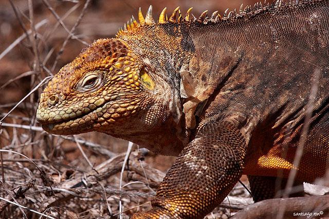 Conolophus subcristatus (Gray, 1831) są jednymi z najbardziej charakterystycznych organizmów Archipelagu Galapagos, choć nieco mniej znanymi niż legwany morskie. To duże, masywnie zbudowane jaszczurki, mogące osiągać rozmiary przekraczające nawet 1 m. O ubarwieniu od ciemnobrązowego po żółto-pomarańczowy, ze spiczastymi łuskami tworzącymi charakterystyczny, acz mniej okazały niż u innych legwanów „pióropusz” od końca głowy, na szyi oraz grzbiecie, który jest dopełnieniem ich majestatycznego wyglądu. Obszar występowania ogranicza się zaledwie do kilku wysp na Galapagos. Preferują środowisko suche. Jako schronienie wykorzystują nory innych zwierząt lub wykopują je same. Na ich dietę składają się pędy roślin i krzewów w tym sukulenty (szczególnym upodobaniem darzą opuncje). Zapotrzebowanie na wodę zaspokajają absorbując ją z pokarmu roślinnego, jedynie podczas pory deszczowej mogą wykorzystać wodę z kałuż czy zagłębień terenu nią wypełnionych. Podobnie jak w przypadku innych fitofagów również i im zdarza się skonsumować pokarm pochodzenia zwierzęcego, w tym padlinę. Mimo swej wielkości są całkowicie bezbronne wobec drapieżników takich jak człowiek, psy, koty, a wprowadzone zwierzęta hodowlane stanowią dla nich ogromną konkurencję w dostępie do pokarmu, niszczą ich siedliska, wyżerają jaja. W 1970 r. podjęto pierwsze działania mające na celu ochronę legwanów, niestety nie zawsze uwieńczone sukcesem. Przykładem może być dramat populacji z Cerro Dragon (Dragon Hill) i Zatoki Conway (Conway bay) na wyspie Santa Cruz, gdzie w niespełna rok zdziczałe psy wytępiły prawie całkowicie te legwany. Dzięki Charles Darwin Research Station (CDR) zainicjowano program hodowlany legwanów galapagoskich – do tej pory kilkaset sztuk zostało „zwróconych” naturze.
