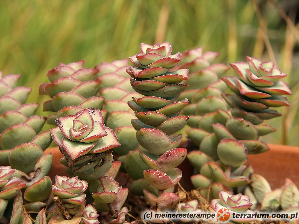- Crassula portulacea (liście jej są zielonego koloru często przechodzącego na żółty, z czerwonymi brzegami)