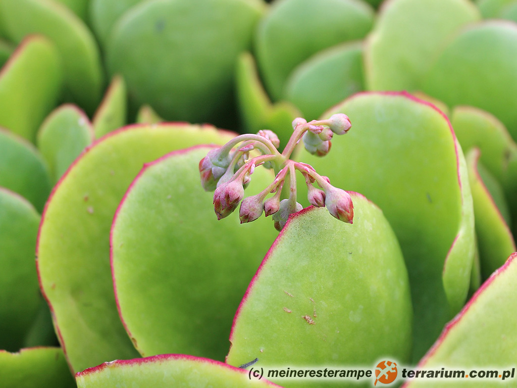 - Crassula arborescens (liście na zakończeniach są okrągłego kształtu, jest bladszego koloru, brak błyszczenia się, z zaznaczeniem czerwonych brzegów)
