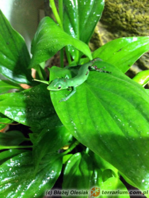 Świeżo wyklute młode mierzą około 11 cm. Zagraniczne opisy podają, że Gastropholis prasina osiągają dojrzałość między 3 a 5 rokiem życia, natomiast w rzeczywistości jest różnie: posiadam ponad dwuletnie parki, które nie przystępują do godów, ale mam też w swojej kolekcji młodsze zwierzęta, które z sukcesem rozmnażam.