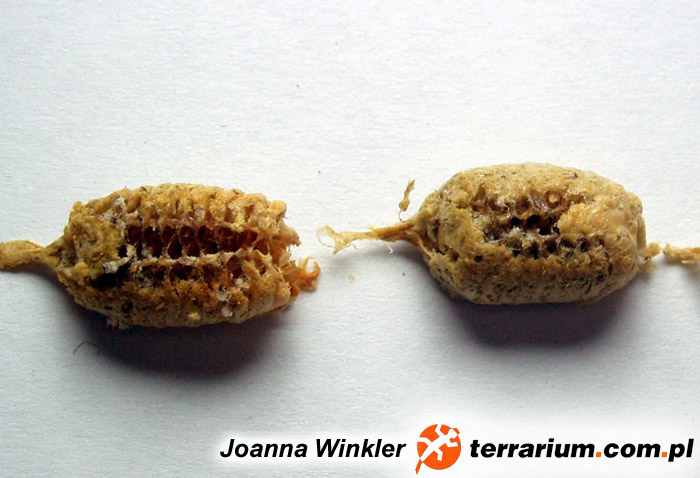 - Inkubacja: 25-28°C, wilgotność 70-80%, czas inkubacji waha się w granicach 15-30 dni, ooteki nie wymagają bezpośredniego spryskiwania.