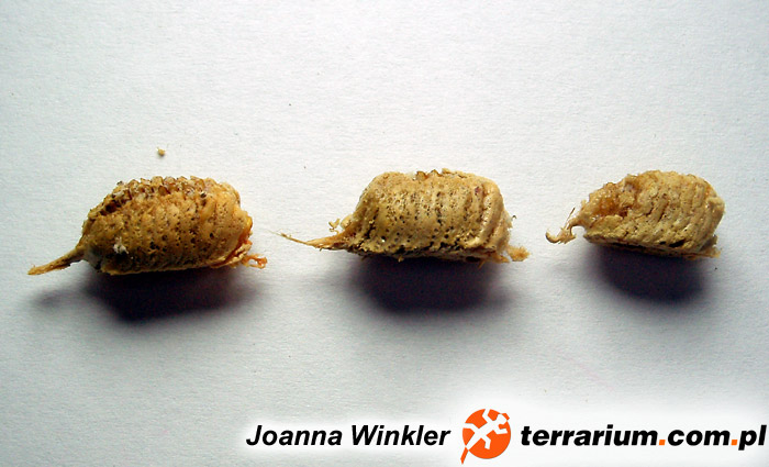 - Mimo drobnej budowy już larwy L1 bez większego problemu radzą sobie z muszkami D. melanogaster, lub wylęgiem świerszczy.