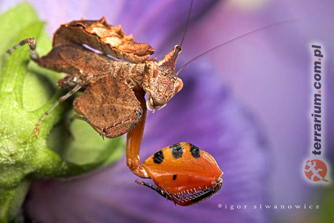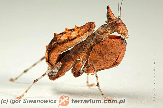 - Zalecamy zbiorczy odchów larw. Należy mieć na uwadze, że mimo systemu porozumiewania się redukującego zjawisko kanibalizmu, w przypadku zbyt małej ilości pokarmu może dochodzić do sporadycznych przypadków, kiedy większe larwy zjadają osobniki młode o wylinkę. Dlatego należy pamiętać o zapewnieniu dużej ilości pokarmu. W zbiorniku powinno być też sporo gałązek na których modliszki będą mogły swobodnie przechodzić wylinki. W przypadku larw L1-L3 jako wystrój terrarium znakomicie sprawdza się wełna drzewna (wolina).