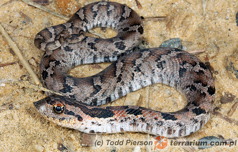 Jeśli chodzi o ubarwienie to jest ono bardzo zróżnicowane. Od beżowego, przez rożnego rodzaju brązy po mocno czerwone, pomarańczowe, a nawet żółte. Bardzo często występują odmiany melanistyczne – całkowicie czarne. Są możliwe zmiany w ubarwieniu wraz z dojrzewaniem węża. W jednym przypadku może to być przybranie trochę jaśniejszej barwy, a w najbardziej ekstremalnych przypadkach nawet zmiana ubarwienia na kompletnie czarną.