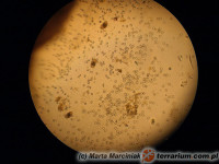 W badaniach bakteriologicznych wymazów kałowych pobranych od węży stwierdzono wystąpienie bezobjawowego nosicielstwa różnych serowarów Salmonella sp. u 50 % badanych zwierząt. Węże mogą być też nosicielami typów Salmonelli niebezpiecznych dla zdrowia człowieka. Zwierzęta zarażają się poprzez zanieczyszczoną karmę (np. produkowane na bazie mączek mięsno-kostnych brykiety – karma dla gryzoni) pozostając bezobjawowymi nosicielami. Objawy kliniczne pojawiają się jedynie przy doświadczalnym zakażeniu – podanie zawiesiny bakterii do jam ciała. | Pojawiają się jedynie przy zaburzeniach odporności zwierząt w następstwie np. długotrwałego transportu, nieodpowiednich warunków utrzymania w terrarium itp. Może pojawić się biegunka, objawy duszności. Mogą się także rozwinąć objawy zakażenia ogólnego – posocznicy. | Należy bezwzględnie rozpoznać czynnik zakaźny w badaniach bakteriologicznych (wymazy kałowe, krew) oraz określić antybiotykooporność bakterii. Dobre efekty terapeutyczne daje zastosowanie Biseptolu, ampicyliny i chloramfenikolu. Należy również prowadzić leczenie wspomagające: elektrolity, aminokwasy, witaminy. Nie ma możliwości całkowitej eliminacji bakterii z organizmu węża. Zwierzęta pozostają bezobjawowymi nosicielami Salmonella sp. | Utrzymanie higieny w terrarium, „żywa karma” musi być zdrowa, w dobrej kondycji. |