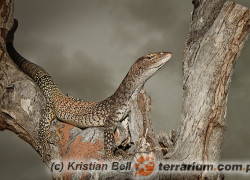 To najmniejszy współcześnie żyjący gatunek warana. Wyglądem i budową ciała nie odbiega od swoich…