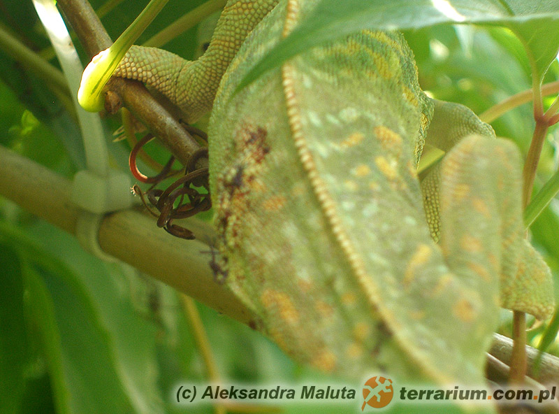 Z grubsza cały proces powinien przebiegać w wyżej opisany sposób. Ale, że terrarystom nie może być za łatwo, w przypadku samic kameleonów jemeński bardzo często dochodzi do zaburzeń związanych ze składaniem jaj.