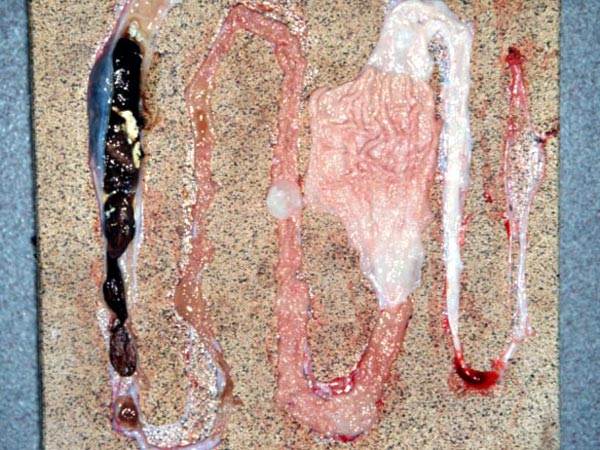 Rysunek 5. Silne powiększenie fałdów podłużnych żołądka.  – Kryptosporidioza gadów