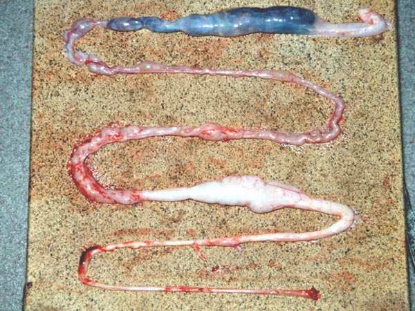 Rysunek 4. Układ pokarmowy węża, widoczne wyrażne powiększenie żołądka.  – Kryptosporidioza gadów