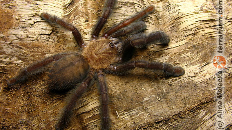 Samica osiąga 6,5-7 cm (głowotułów + odwłok) z nogami do około 17-18 cm. Dorosłe…