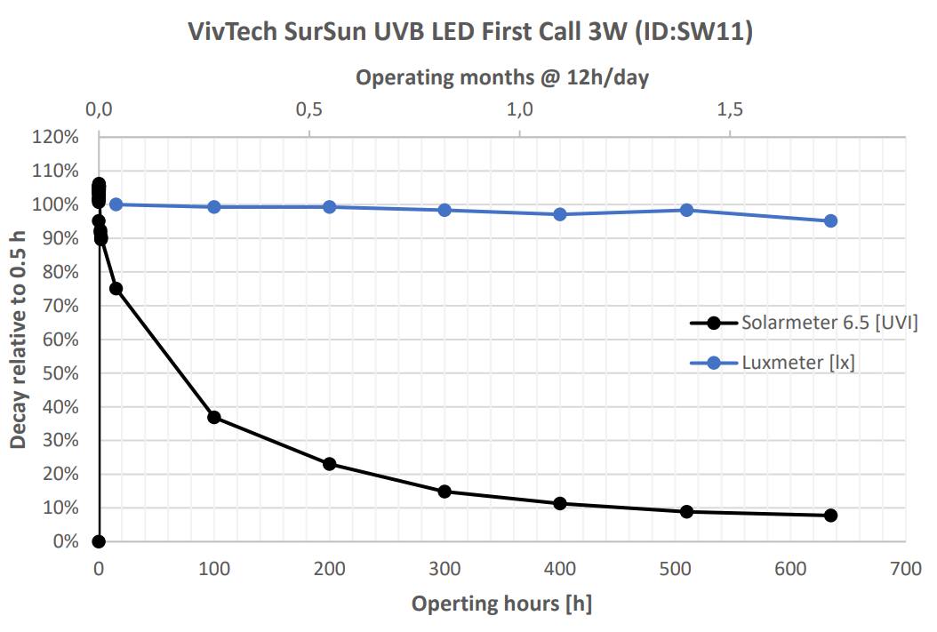 VivTech Sur Sun First Call 3W (LED UVB) – test wypalania się lampy
