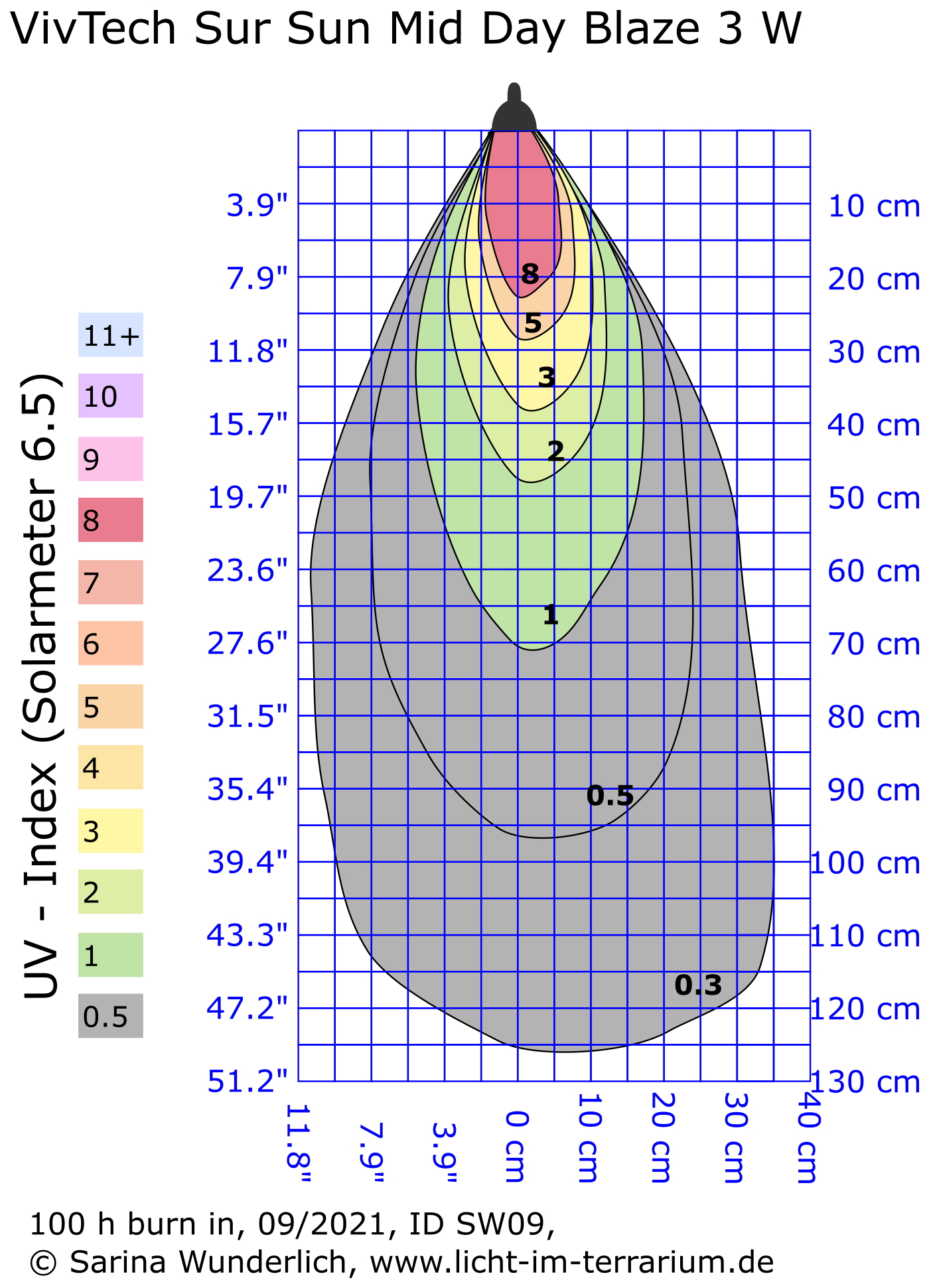 VivTech Sur Sun Mid Day Blaze 3W – LED UVB – UV Chart