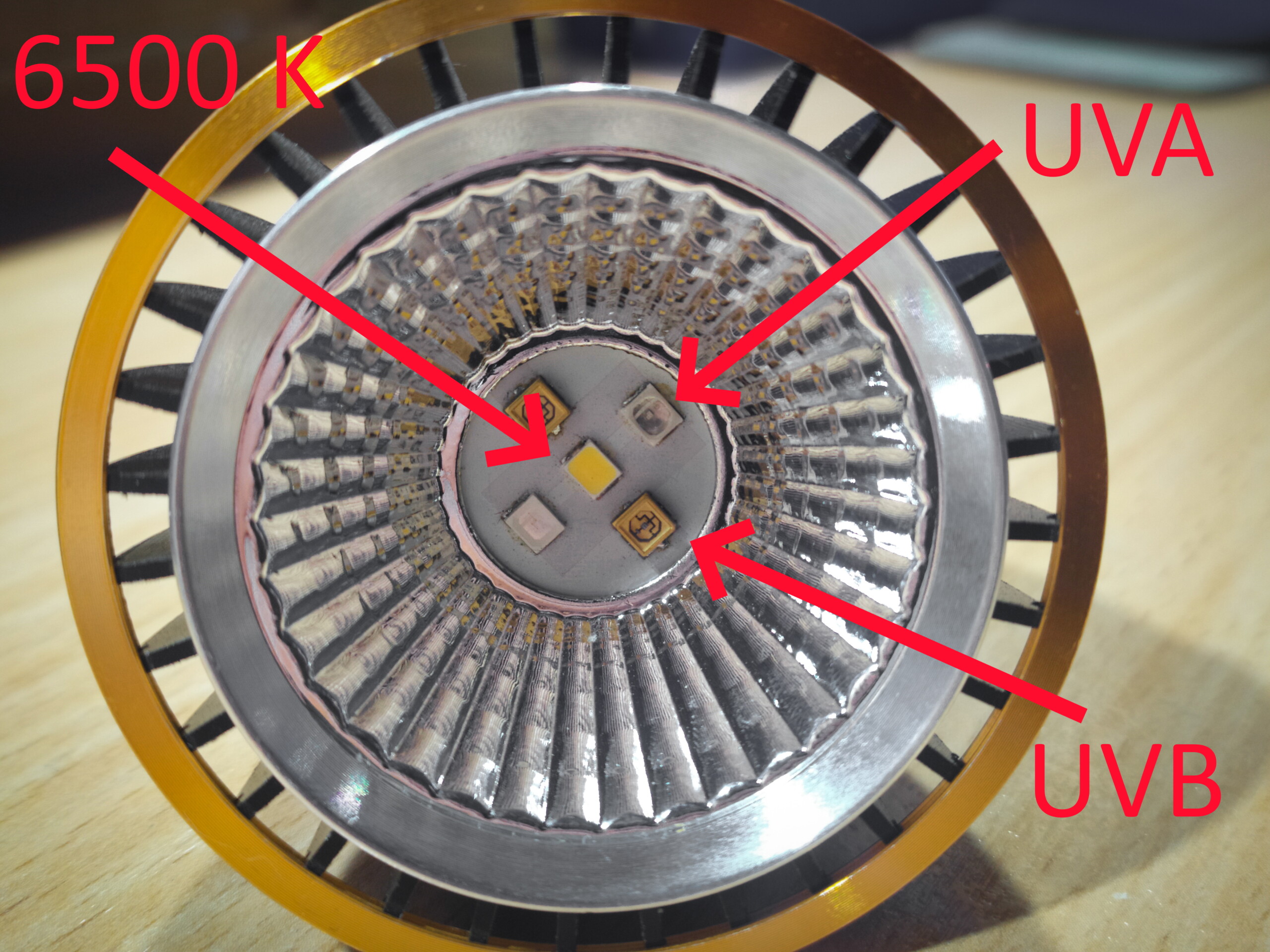 Niestety, jak to z większością technologii bywa, na rynku znajdziemy zarówno te jakościowo dobre produkty jak i te bardzo niskiej jakości. W przypadku LED UV produkty niskiej jakości są szkodliwe. Także nie sposób nie zacząć od grupy LED UVB, które niestety emitują również UVC. Takie lampy są szczególnie szkodliwe dla zwierząt, a efekty ich działania często widać już po kilku dniach. Zwierzęta zaczynają biegać z zamkniętymi oczami, stają się apatyczne, chowają się w kryjówkach i odmawiają jedzenia. Tego typu lampy można bez problemu nabyć na różnych portalach aukcyjnych, dlatego należy zwracać uwagę na to co kupujemy. Pisaliśmy już o tych lampach tutaj.