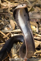 Tryb życia naziemny, samotniczy. Zachowanie – agresywna w obronie; przy zagrożeniu podnosi przednią część ciała, rozpościera kaptur i syczy