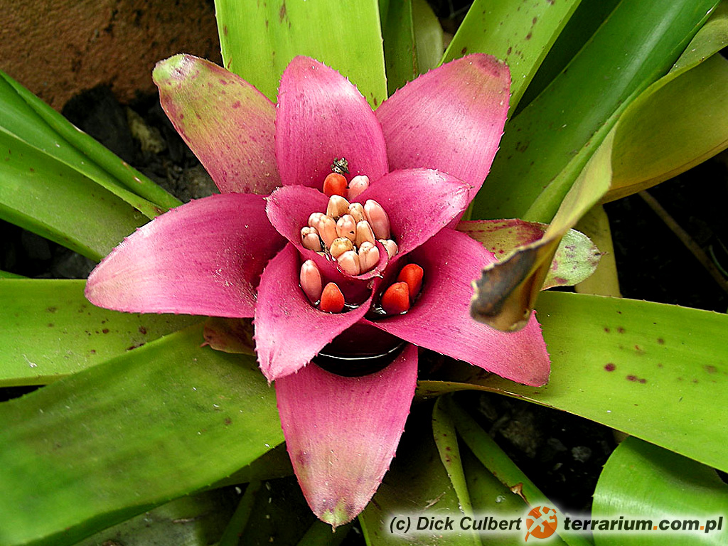 Wielkość: Podobnie jak większość bromelii, osiąga maksymalną wielkość 30 cm. Dlatego też nadaje się do średnich,wilgotnych terrariów z płazami lub gadami.