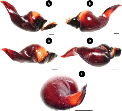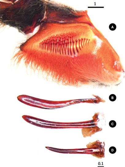 Nowy gatunek został opisany na podstawie męskich (bulbusy) i żeńskich (spermateka) organów rozrodczych, a także na podstawie budowy organu strydulacyjnego (organu za pomocą którego może wydawać dźwięki).