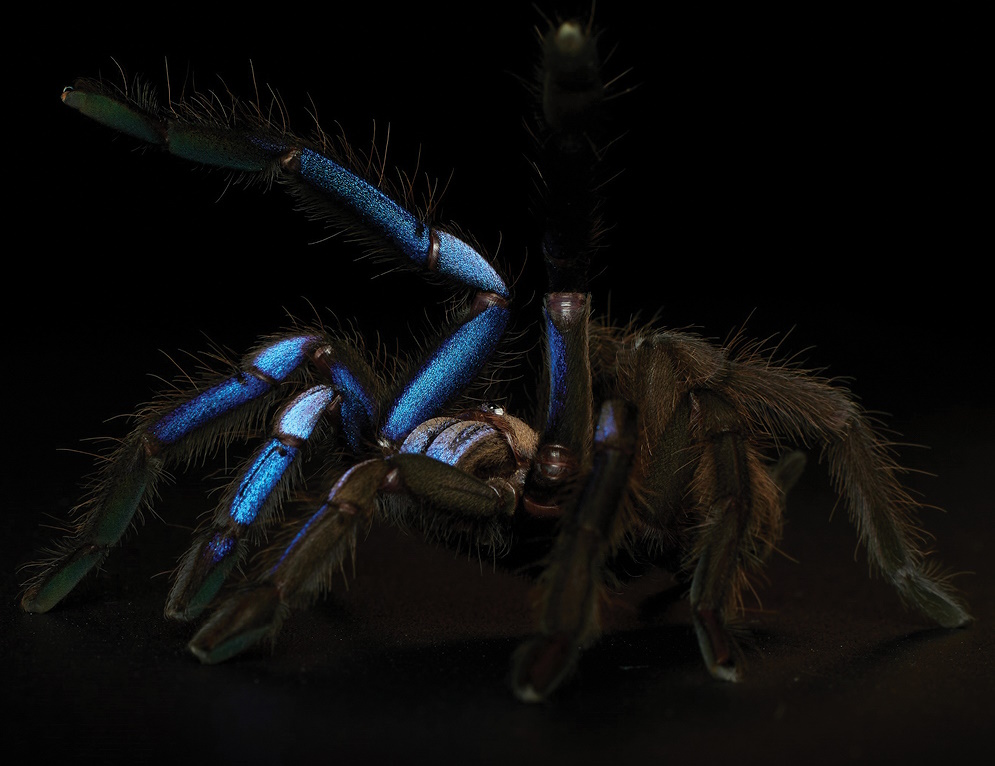 Niebieskie ubarwienie w świecie zwierząt jest stosunkowo rzadką cechą. Jednak według niektórych badań u ptaszników w wyniku ewolucji niebieski kolor pojawił się niezależnie jako nowa cecha przynajmniej 8 razy (Hsiung et al. 2015).
