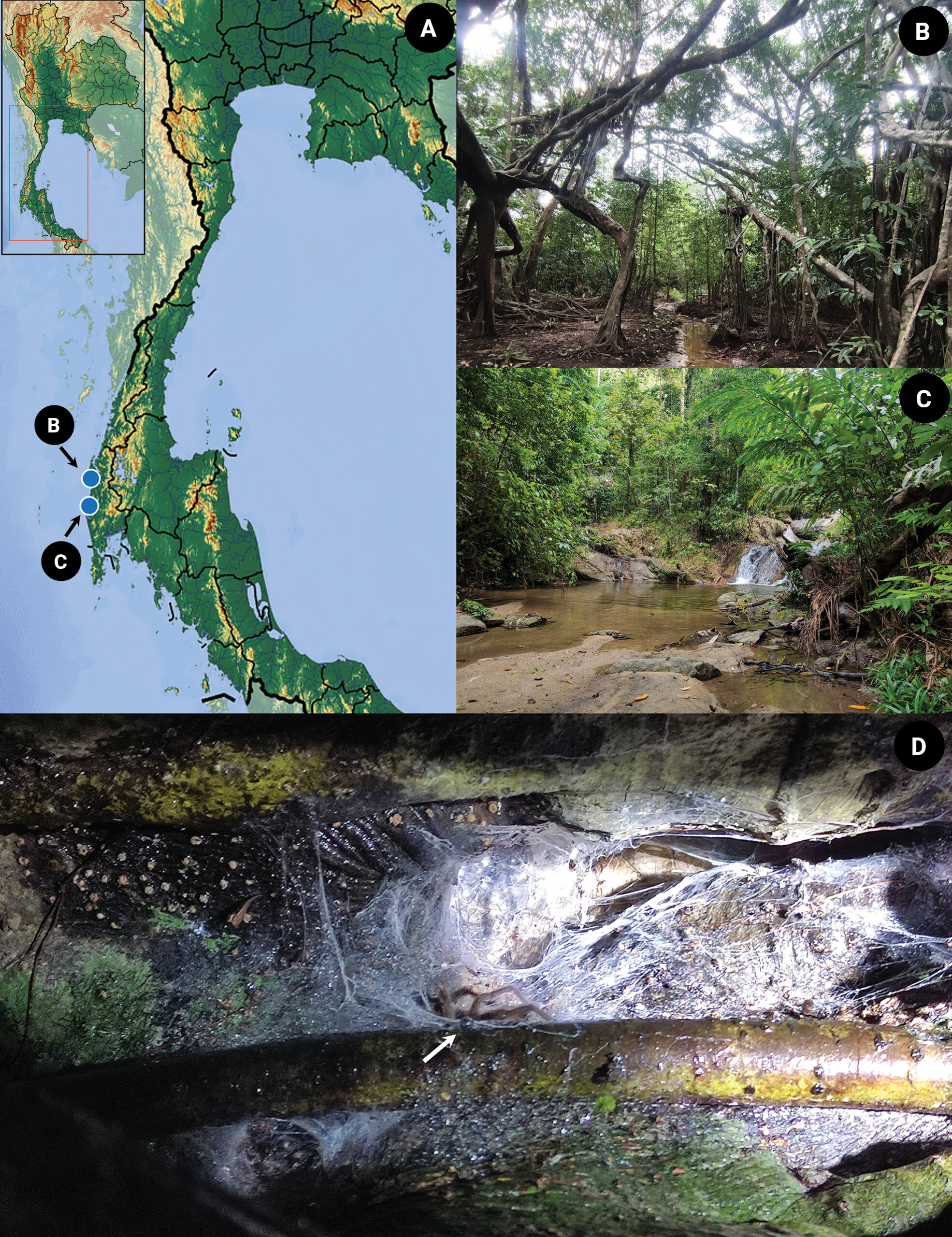 Mapa i zdjęcia poniżej przedstawiają miejsce i środowisko odkrycia tego gatunku. Gatunek ten można znaleźć w tropikalnych lasach Tajlandii do 57 m n.p.m.