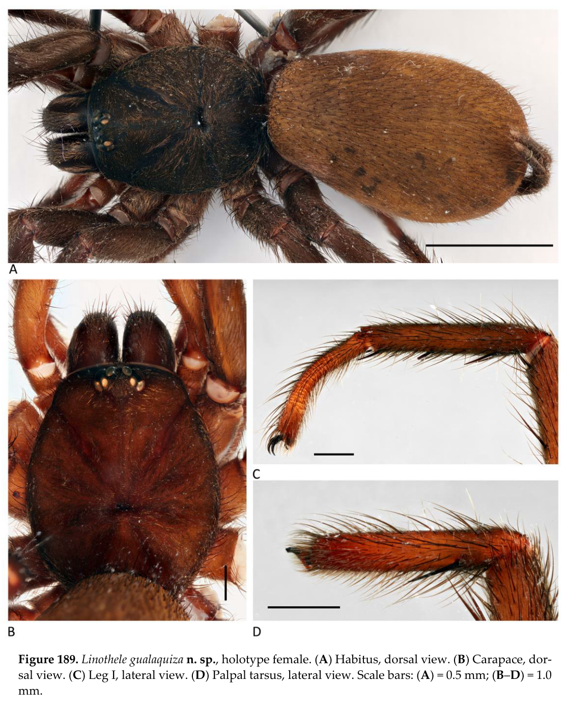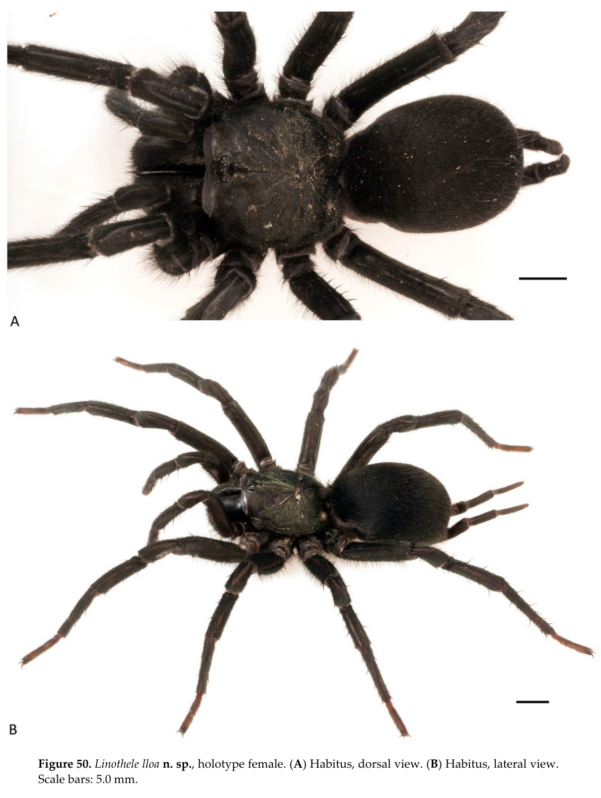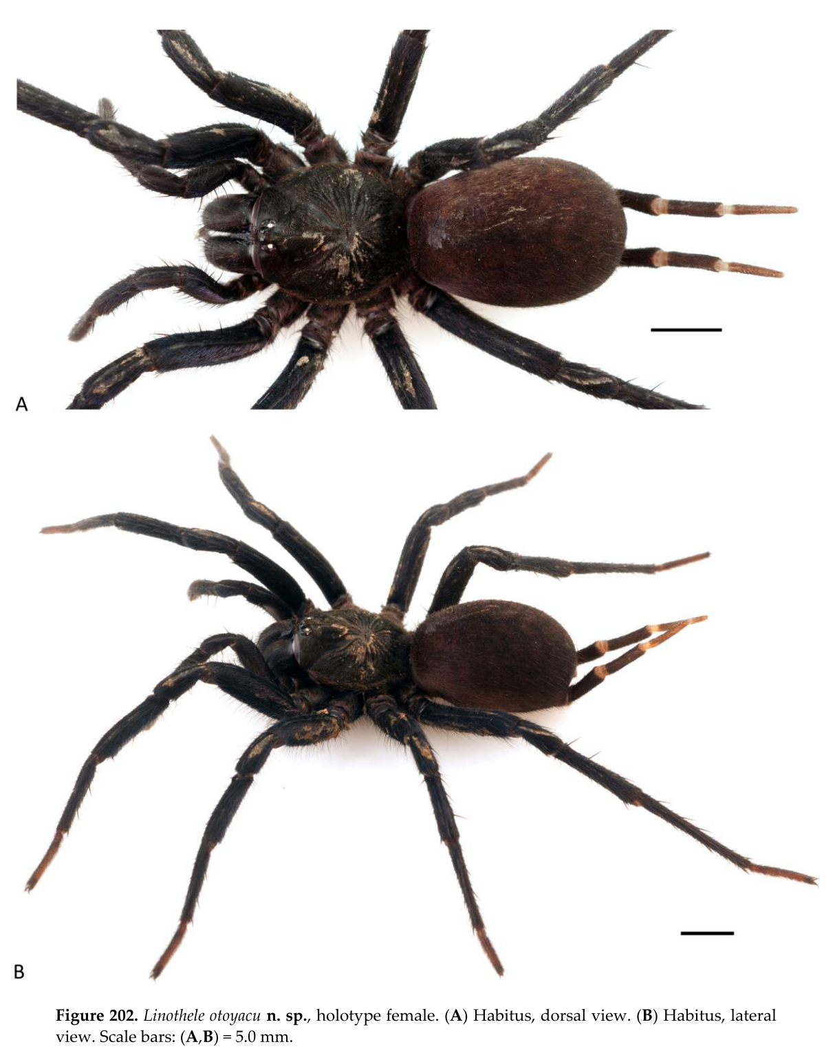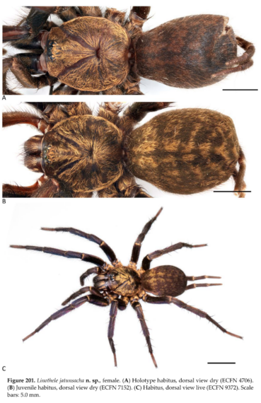 - Dupérré, N., Tapia, E. & Bond, J. E. (2023). Review of the spider genus Linothele (Mygalomorphae, Dipluridae) from Ecuador – an exceptional case of speciation in the Andes. Arthropoda 1(3): 68-341. doi:10.3390/arthropoda1030010
