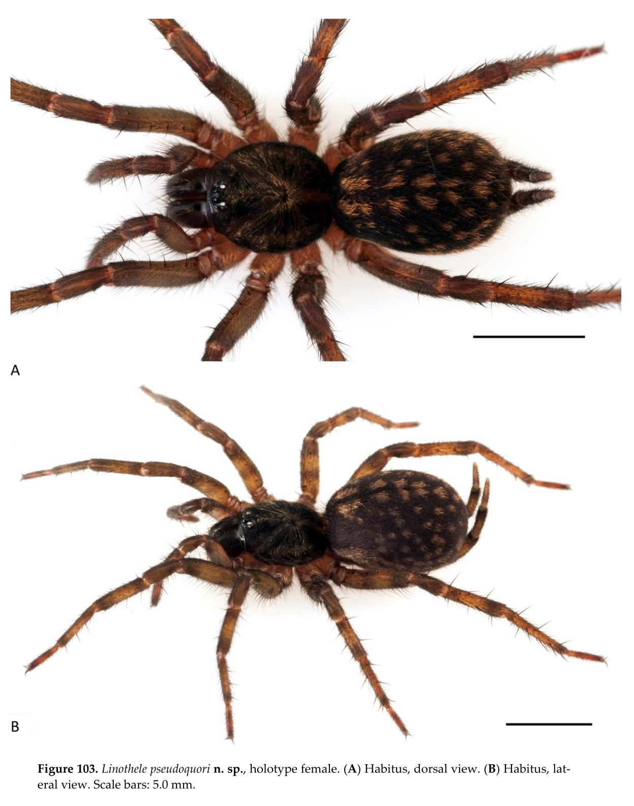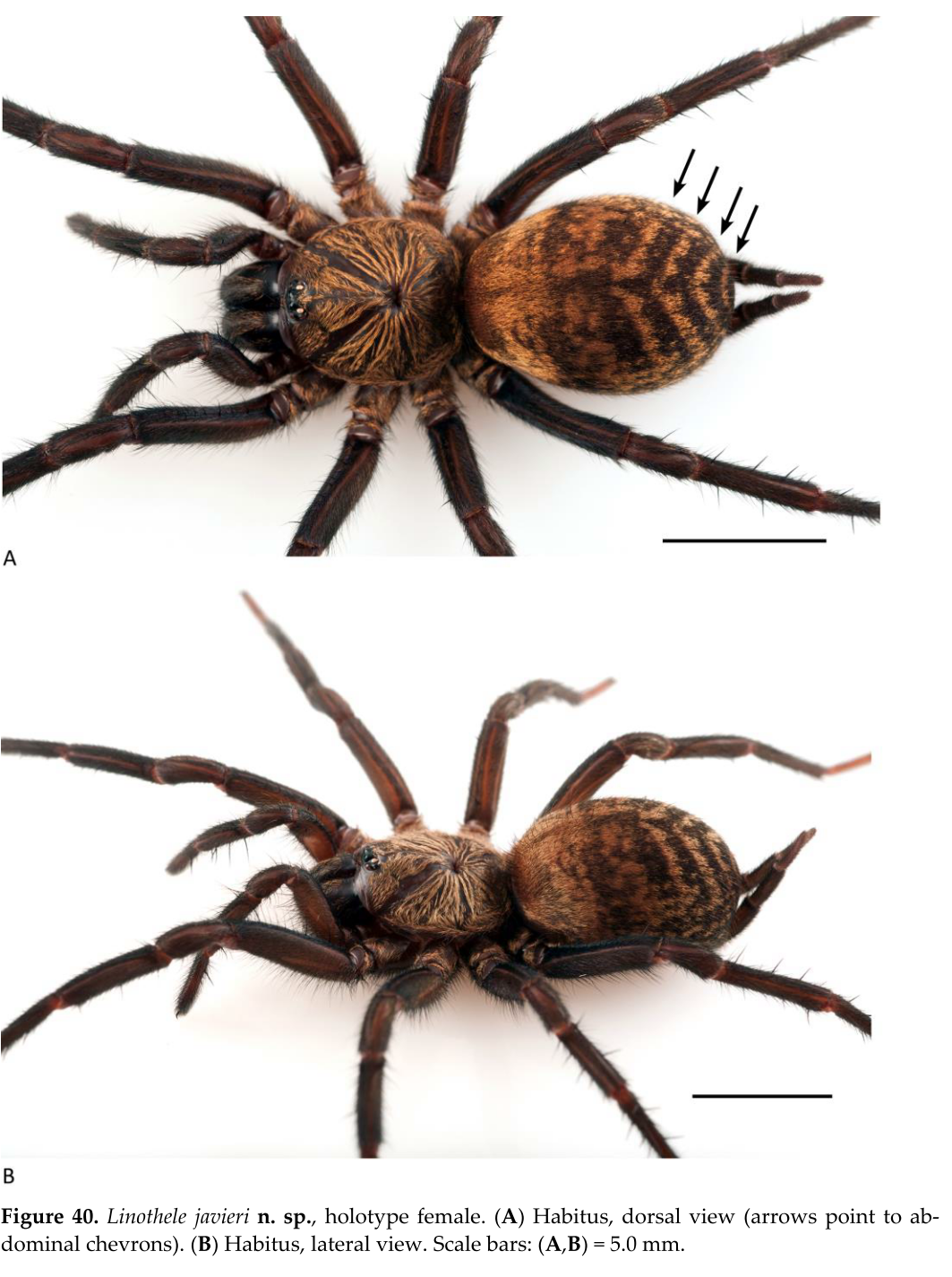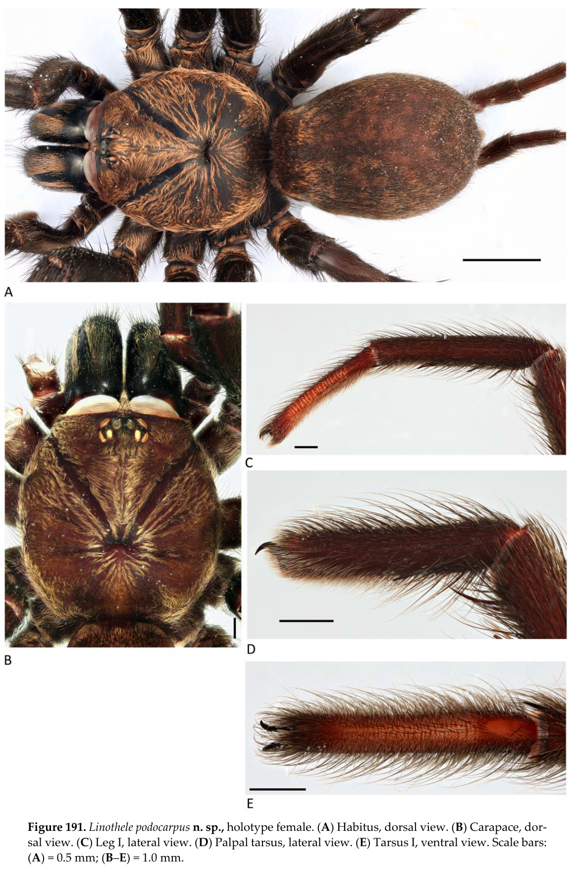 - Dupérré, N., Tapia, E. & Bond, J. E. (2023). Review of the spider genus Linothele (Mygalomorphae, Dipluridae) from Ecuador – an exceptional case of speciation in the Andes. Arthropoda 1(3): 68-341. doi:10.3390/arthropoda1030010