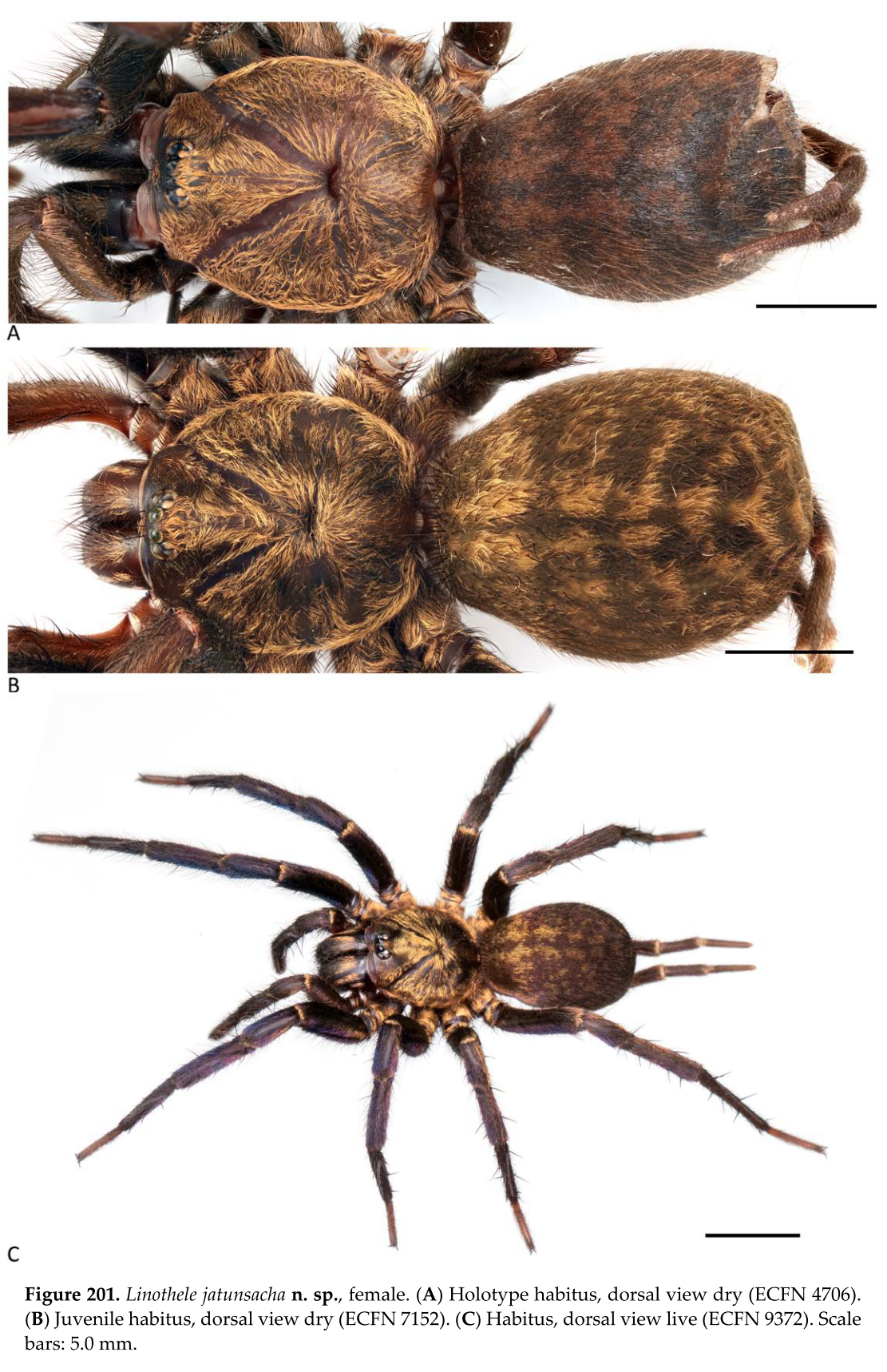 Publikacja opisuje aż 38 nowych gatunków z rodzaju Linothele. Dla porównania przed powstaniem tej publikacji znanych było 24 gatunki. Listę i zdjęcia gatunków przedstawiamy poniżej: