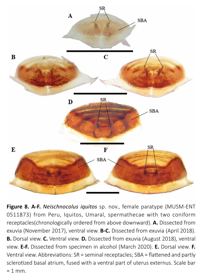 Spermateka młodych samic może mieć nieco inny kształt, w szczególności płytka bazalna jest w pełni rozwinięta dopiero u dojrzałych płciowo samic. Pokazuje to, jak ważna jest znajomość rozwoju gatunku, by uniknąć pomyłek w oznaczaniu. W badaniu pokazano poszczególne stadia spermateki.