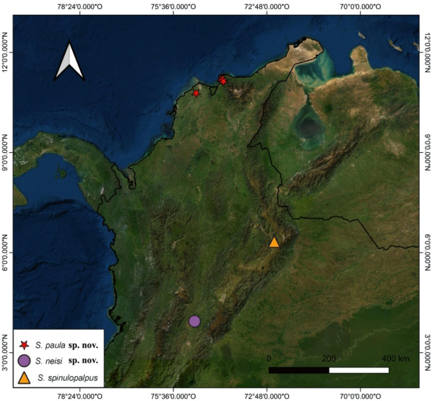 Mapa występowania Spinosatibiapalpus w Kolumbii