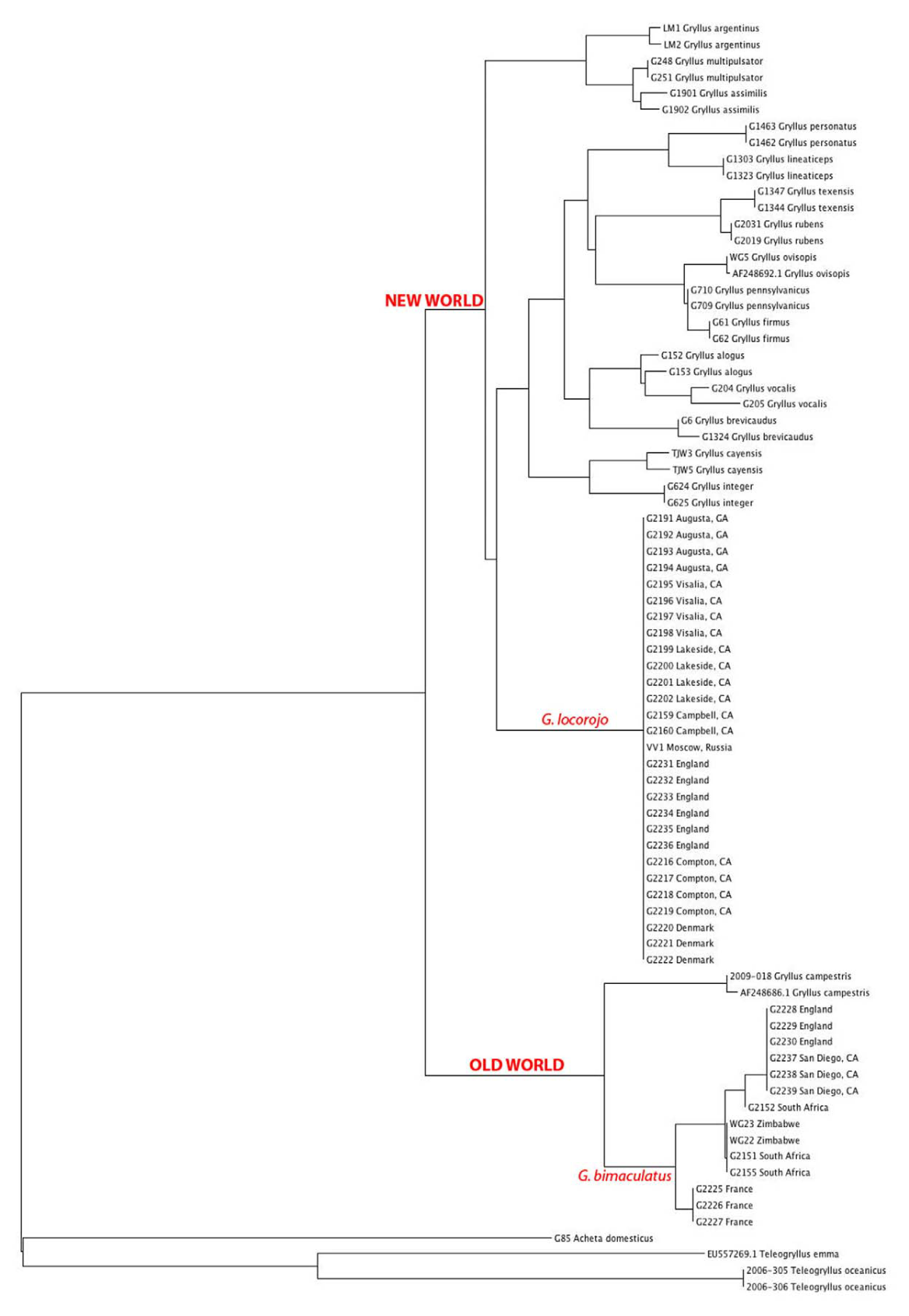 Pochodzenie świerszcza czerwonogłowego (Gryllus locorojo)