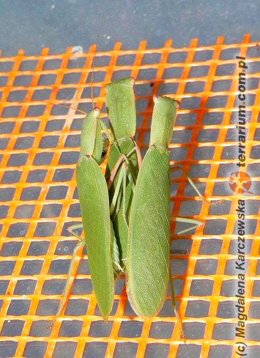 O ile utrzymanie tych modliszek od postaci larwalnej do imago jest proste o tyle kopulacja może przysporzyć niewielkich problemów. Choć w naturze to podobno rzadkość w hodowli samiec może zostać potraktowany przez samicę jako posiłek.