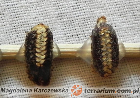 - Uwagi: W warunkach naturalnych samice składają ooteki jesienią a same umierają na początku zimy. Klucie młodych z ootek następuje wiosną.