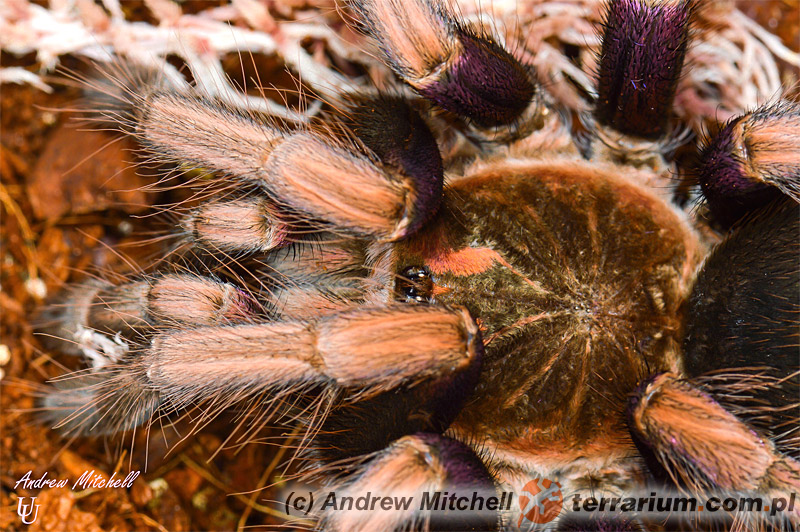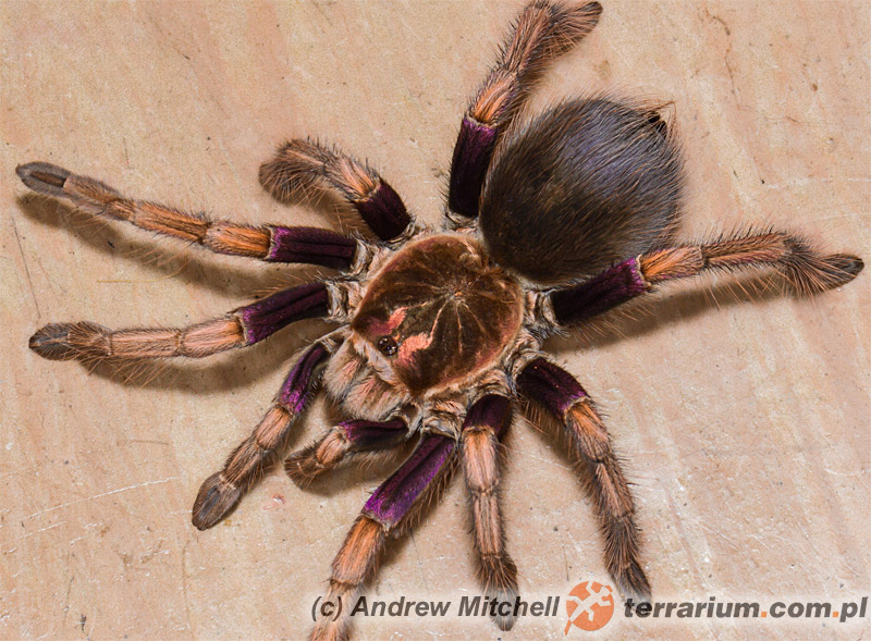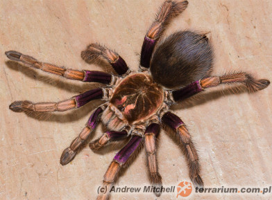 Angielska nazwa tego ptasznika to Ecuadorian Purple Femur Bird Eater.