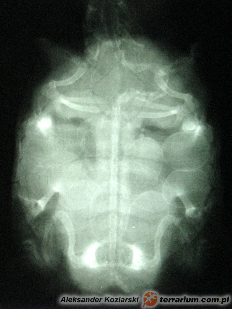 RTG, widoczne 11 jaj – Pelomedusa subrufa – pelomeduza afrykańska