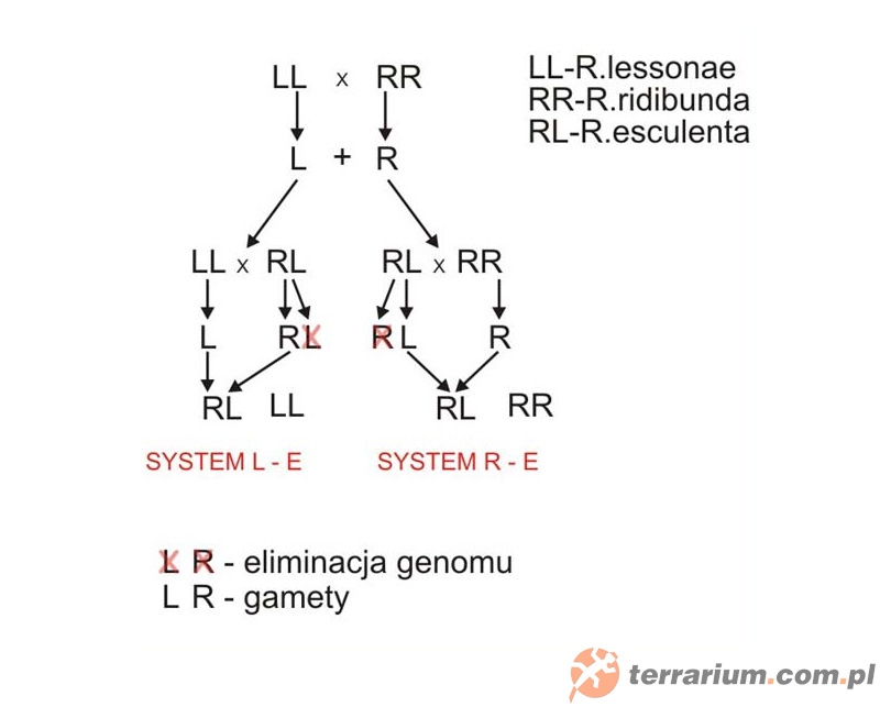 Model hybrydogenezy w mieszanych populacjach żab zielonych.