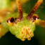 Jaja wielkości około 0,5 cm, koloru brązowego. Po złożeniu gładkie dopiero gdy nabiorą wilgoci wyrastają z nich włoski.