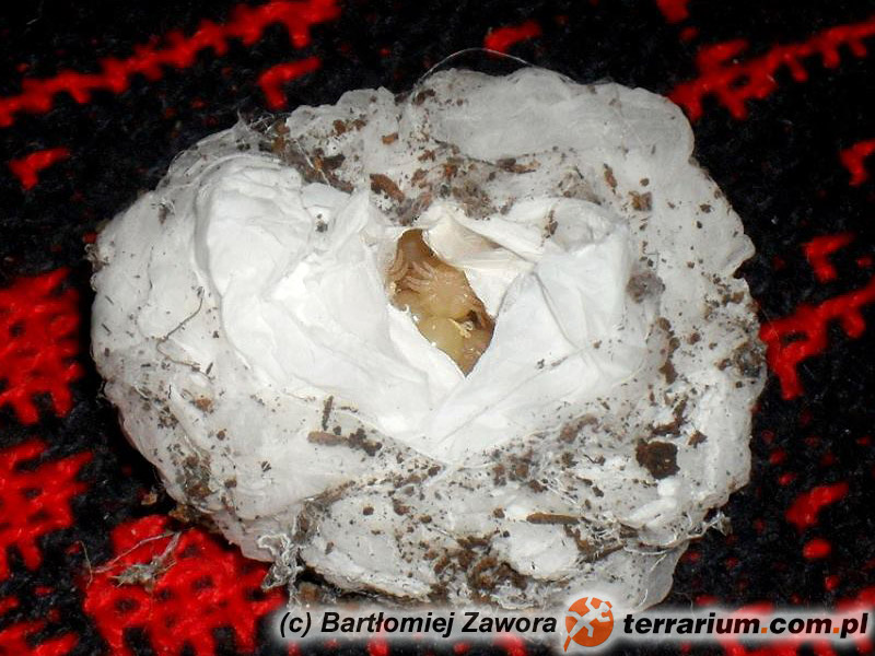 Poecilotheria tigrinawesseli – raport rozmnożeniowy – Kokon, a w środku N1