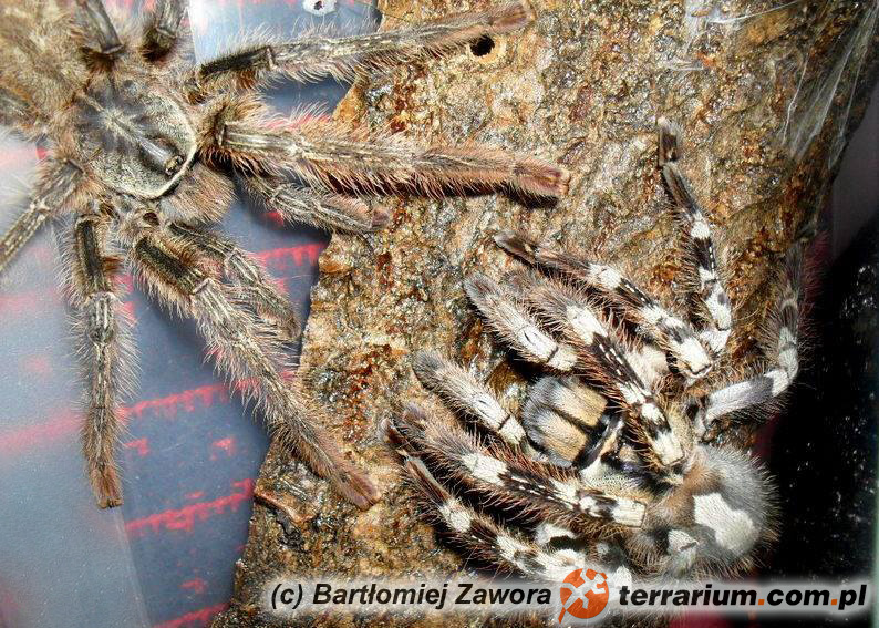 - 13.03.14 – pierwsze dopuszczanie, zostawiłem go u samicy, jednak słyszałem jak go ganiała to następnego dnia go wyjąłem. Poecilotheria vittata dopuszczam w pojemniku o wymiarach 56x41x33 cm (dł./szer./wys.).