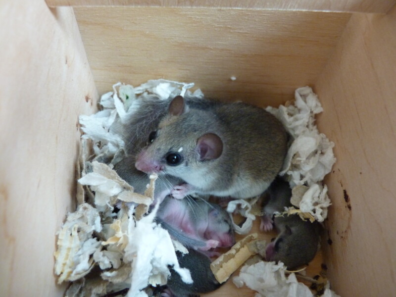 W terrarium umieszczamy gałązki drzew owocowych po których zwierzęta będą się wspinać, dwa domki (budki-dziuple) w których mogą się schować, około 3 cm warstwę podłoża, sianko, pojemnik na pokarm i wodę, której nigdy nie może zabraknąć, gdyż łatwo ulegają odwodnieniu. Można włożyć kółko do biegania dla myszy, dobrze gdyby nie było metalowe z prętami, ale z plastyku bądź drobno-oczkowanej siatki, gdyż w szczeliny między prętami koła mogą wpadać łapki i ogon co grozi ich zakleszczeniem i połamaniem. Mając dostęp do kółka zwierzątka te będą biegać na nim przez większość nocy, gdyż mają one ogromną potrzebę ruchu.