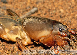 Średni do dużego świerszcza o długości 20–30 mm. Ciało ciemnobrązowe lub czarne, błyszczące. Skrzydła…